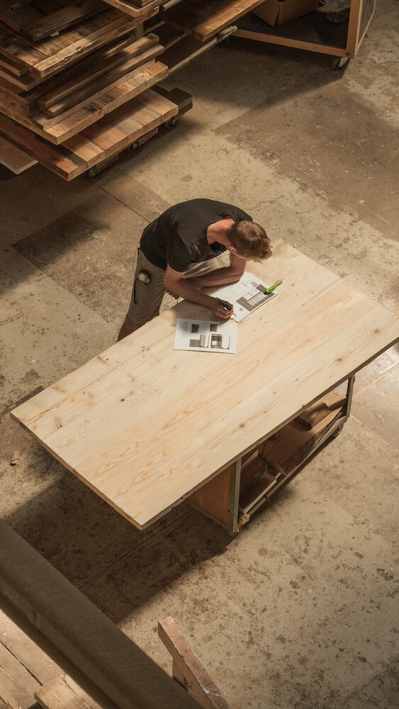 Mischa entdeckte früh seine Leidenschaft für die Natur und verbrachte seine Jugend in den Bergen und Wäldern. Während seiner Zeit an einer Waldorfschule erwarb er handwerkliches Geschick und begann, Projekte aus Massivholz umzusetzen. Später vertiefte er sein Interesse durch eine Ausbildung im Bereich Möbeldesign. Die Gründung von Woodboom ermöglichte es ihm, umfangreiche Erfahrungen in der Holzbearbeitung zu sammeln und seine Begeisterung für Nachhaltigkeit zu verfolgen. Dabei erkannte er, dass die Verwendung von Massivholz nicht automatisch nachhaltig ist, und setzte sich dafür ein, ein besseres Verständnis für die verschiedenen Verarbeitungsprozesse zu schaffen. Obwohl er als Möbelhersteller in unmittelbarer Nähe zur Quelle sitzt, baute Mischa sein ersten eigenen Woodboom-Tisch recht spät. Das lag vor allem daran, dass das Herstellen eines eigenen Tisches viel Zeit beansprucht. Umso mehr genießt er es, in einem Zuhause zu leben, das mit selbstgebauten Möbeln gefüllt ist. Diese Zeit für persönliche Projekte war während der Gründungsphase von Woodboom selten.