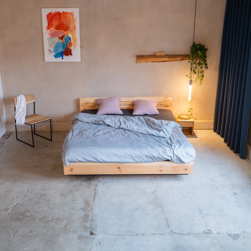 2015 machten sie ihre Leidenschaft zum Beruf: Mischa gründete Woodboom, Joschka schloss sich wenig später an. Seitdem entwerfen sie Möbel, die den Kreislauf achten – jeder Verschnitt wird weiterverarbeitet. Ihre Tische, Betten und Kommoden tragen die Narben des Holzes mit Stolz und sind für Generationen gedacht.