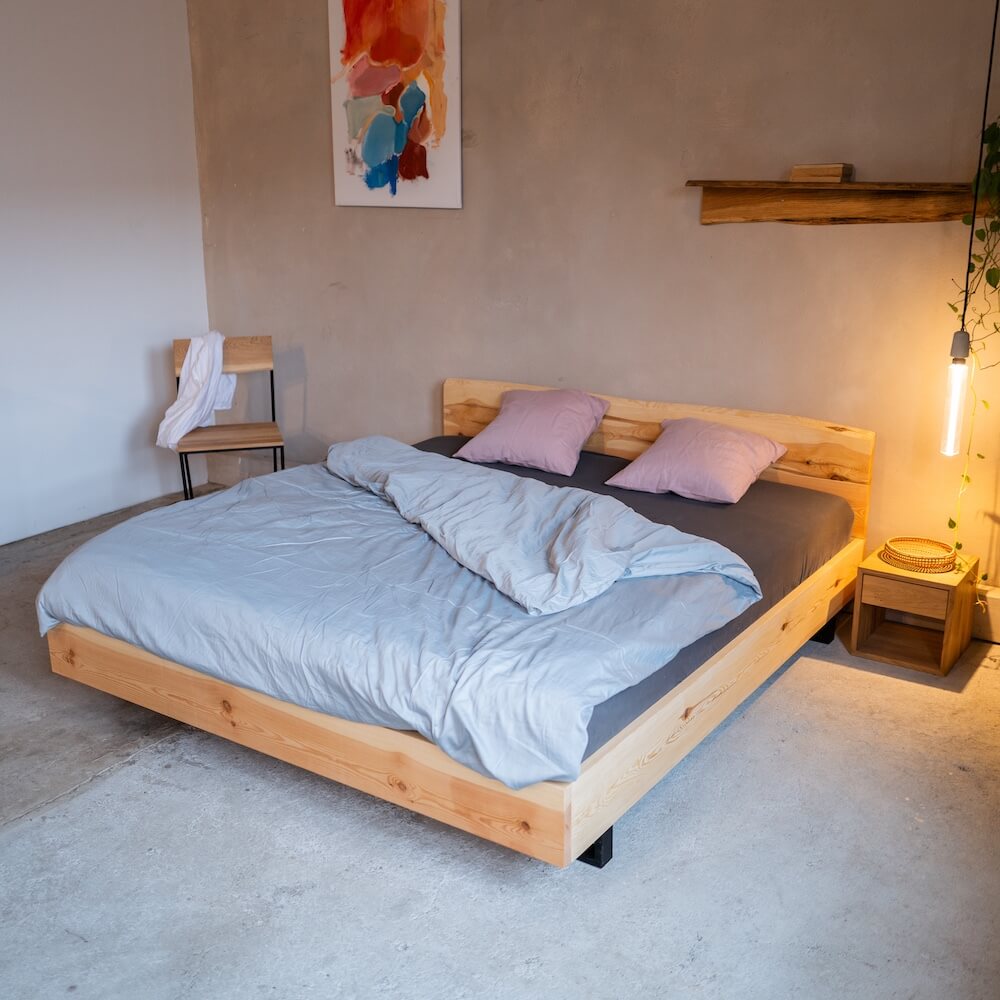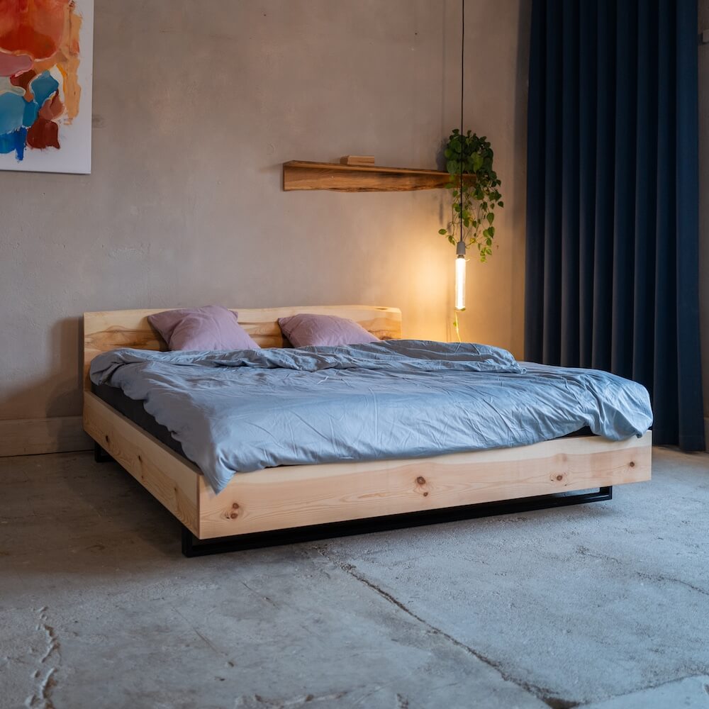 Massivholzbett LERA Schwebebett mit Metallkufen aus 30mm Kiefer