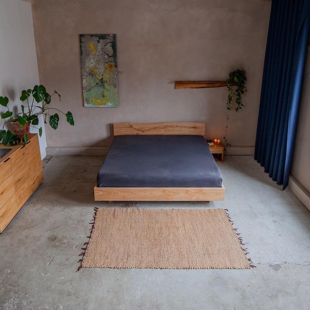 2015 machten sie ihre Leidenschaft zum Beruf: Mischa gründete Woodboom, Joschka schloss sich wenig später an. Seitdem entwerfen sie Möbel, die den Kreislauf achten – jeder Verschnitt wird weiterverarbeitet. Ihre Tische, Betten und Kommoden tragen die Narben des Holzes mit Stolz und sind für Generationen gedacht.